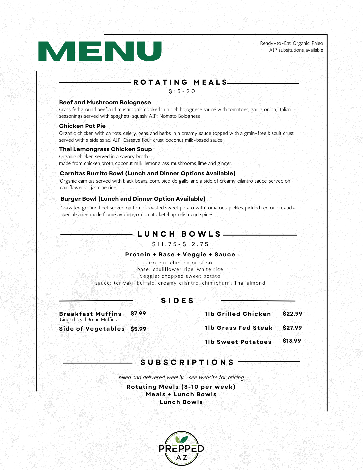 This week’s menu will close for ordering on Thursday, 12/11 at 11:59 PM and will be delivered on Sunday, 12/14 between 4:30-7:30 PM.